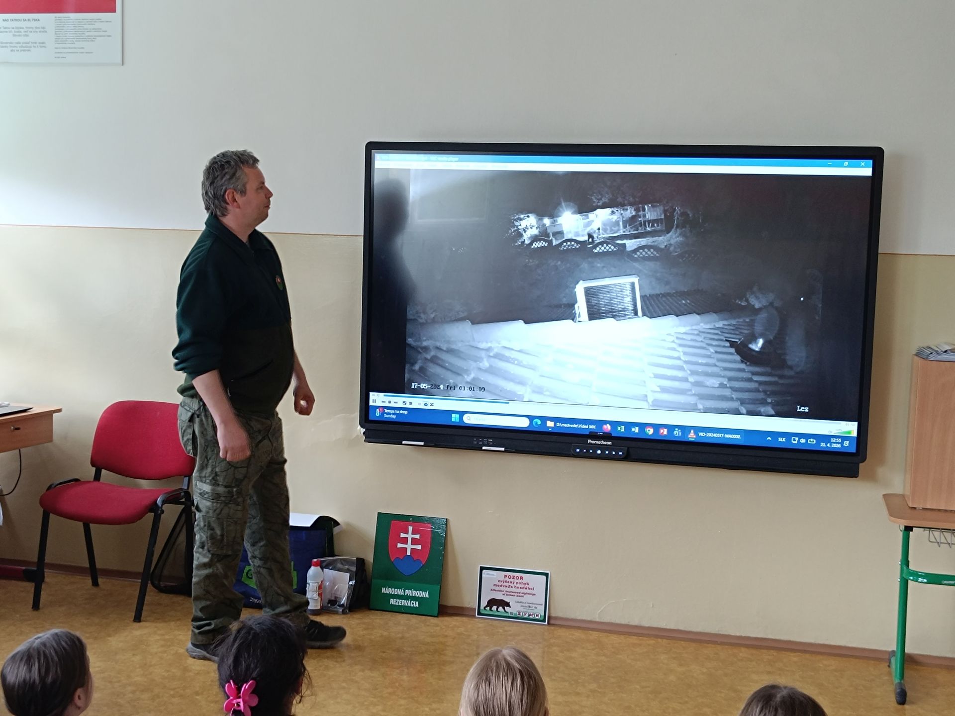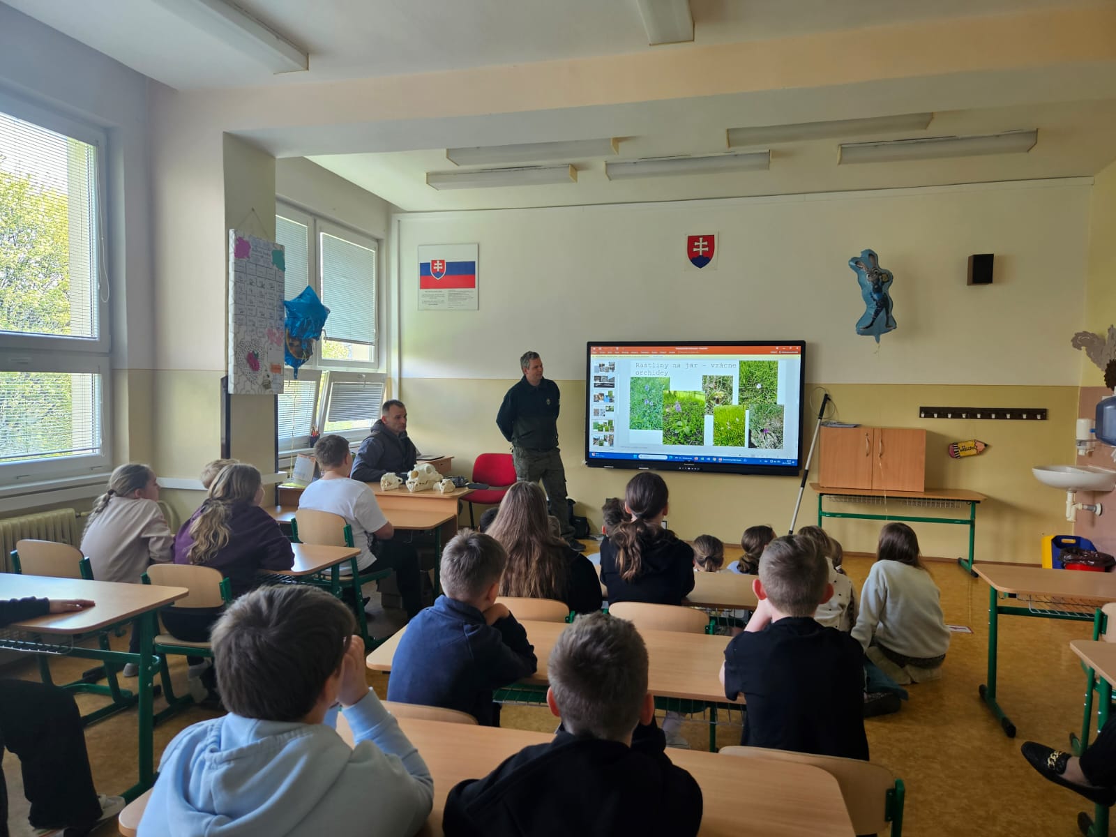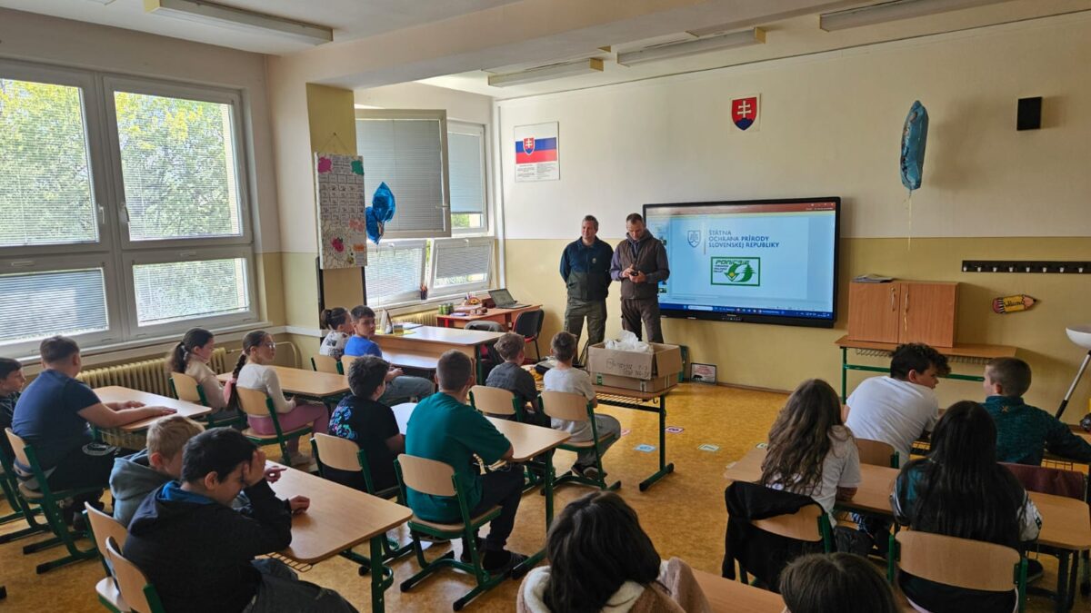 Pracovníci Štátnej ochrany prírody SR – Zásahový tím Západ a Správy CHKO Ponitrie postupne absolvovali besedy so štyrmi skupinami žiakov v rámci hodiny prírodopisu. Žiaci sa dozvedeli zaujímavosti z našej práce, prečo prírodu chrániť, aké nenápadné chránené rastlinky a živočíchy môžu vidieť vo svojom okolí a ako môžu sami pomôcť. Dozvedeli sa o správaní v prírode, o tom ako predchádzať nežiadúcemu stretu s veľkou šelmou a čo robiť v prípade nálezu chráneného živočícha.