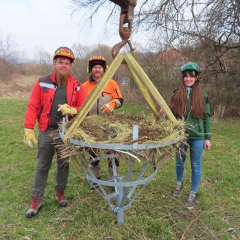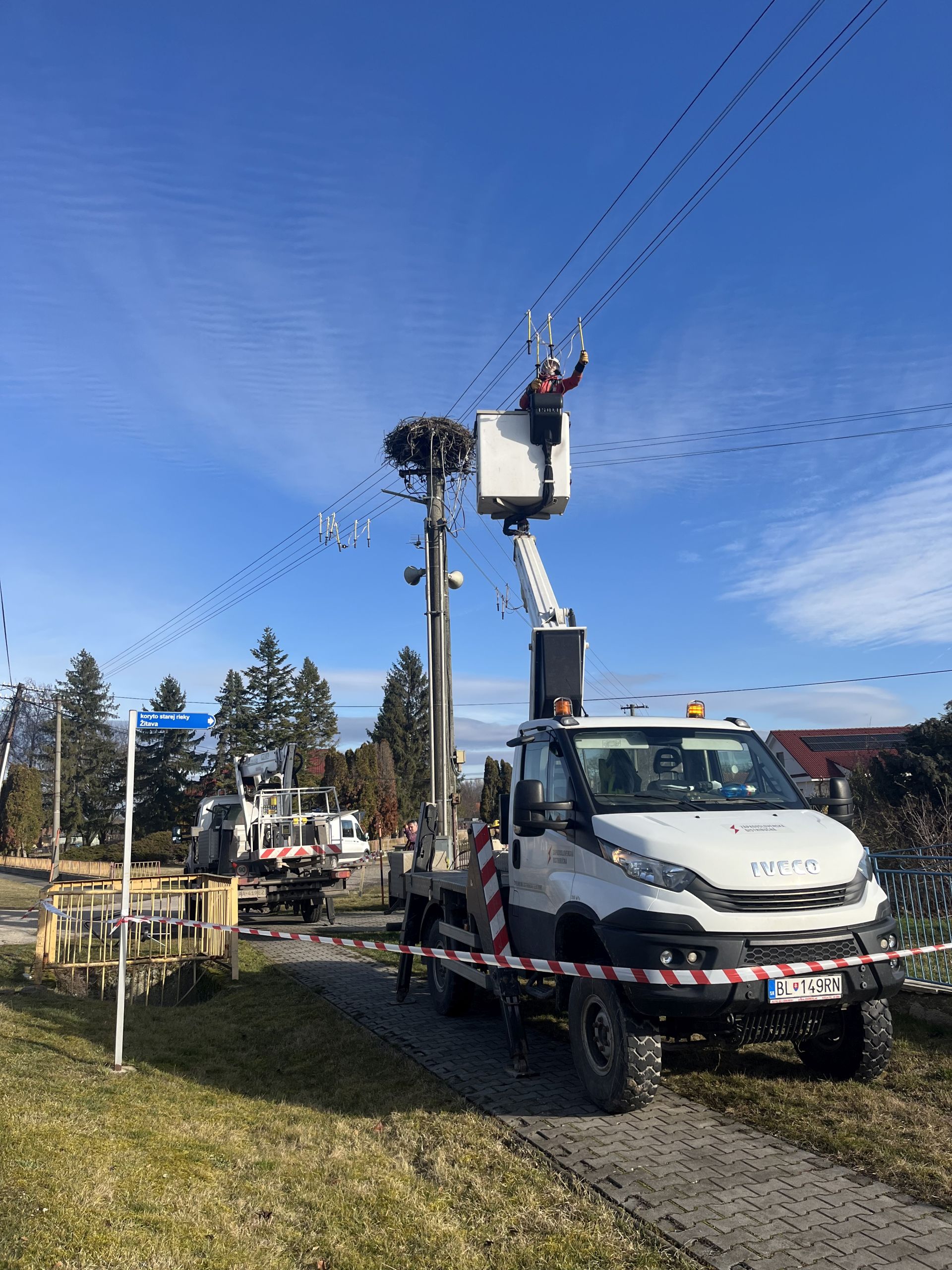 V priebehu mesiacov február až marec sa nám v spolupráci so Západoslovenskou distribučnou, a.s., a miestnou samosprávou podarilo zrealizovať päť prekládok bocianích hniezd v územnej pôsobnosti Správy CHKO Ponitrie, pričom viaceré hniezda už bociany úspešne obsadili.