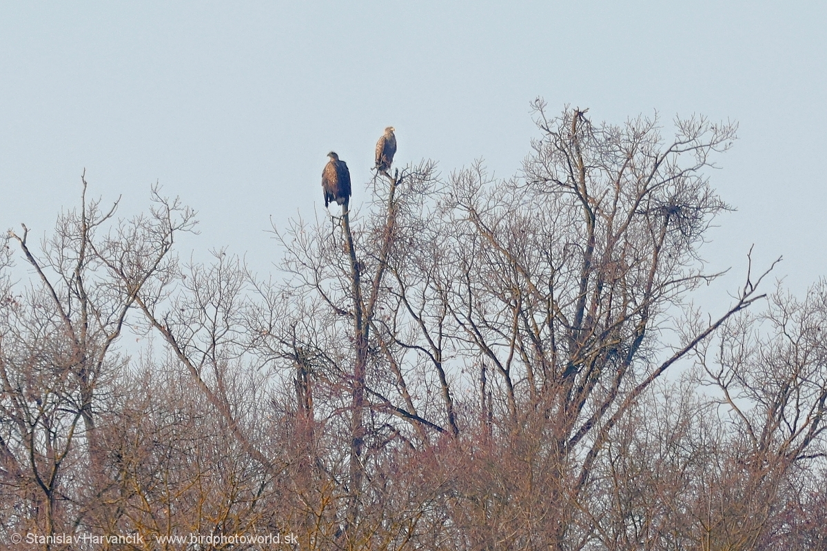 Súčasne s monitoringom zimujúceho vodného vtáctva a kormoránov na nocoviskách  prebiehalo cez víkend 16. – 18. 1. 2026  aj sčítanie dravých vtákov. Prevládali myšiaky hôrne, ktorých bolo miestami v dohľade na desiatky v zasnežených poliach, našlo sa medzi nimi aj niekoľko severských. Potom nasledoval sokol myšiar, videli sme aj niekoľko dospelých samcov kane sivej a jedného sokola rároha, ktorý obral „kaňúra“ o uloveného hraboša. Orly kráľovské už posedávali v blízkosti hniezd, podobne i orliaky morské. Nechýbali jastraby krahulce a jastraby veľké. Popri dravcoch sme zaznamenávali aj iné druhy vtákov a stihli sme ešte aj niekoľko monitorovacích lokalít zimujúceho vodného vtáctva a sčítali sme kormorány na nocovisku v okrese Partizánske. Perličkou na záver bol osamelý chochláč severský pri Nemčiňanoch.